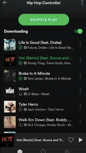 - Selecting a popular track enables shuffle mode, which can't be turned off.